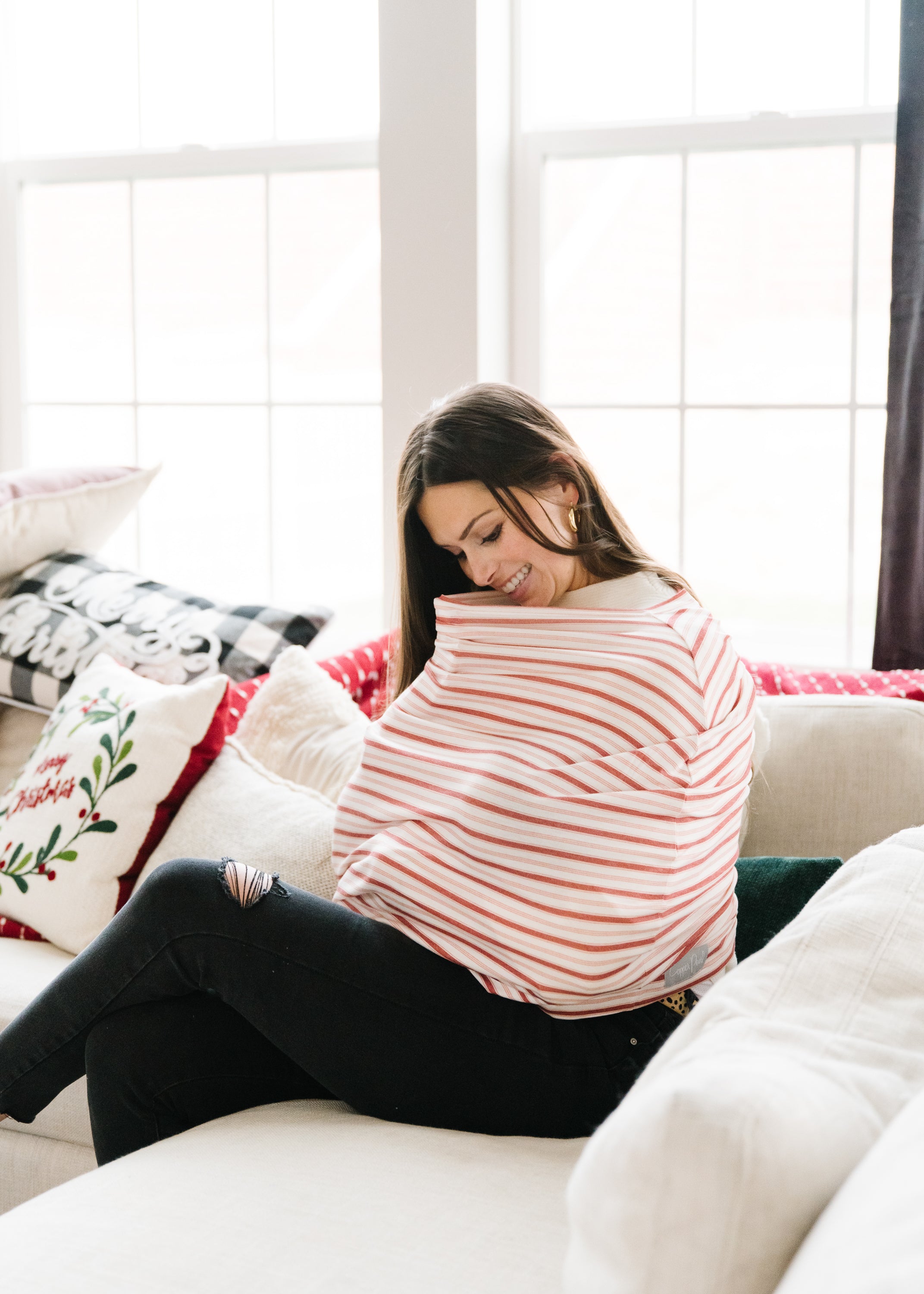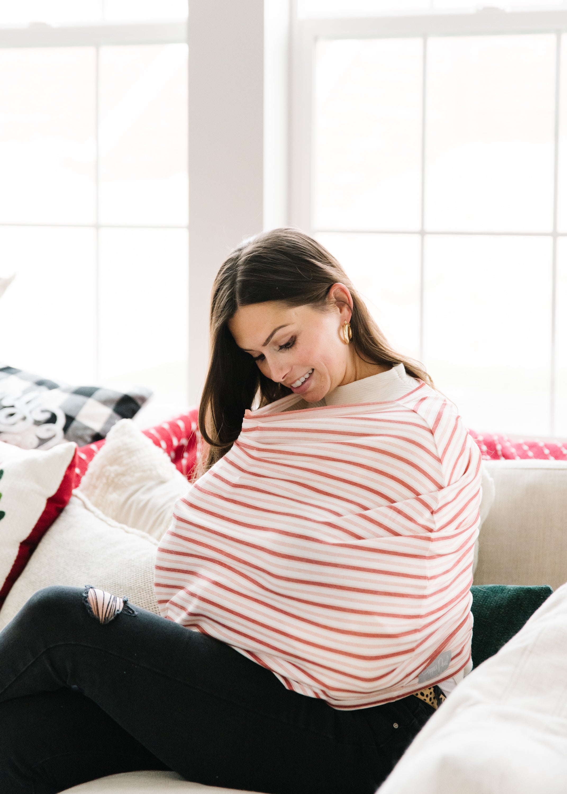 - Stretchy fabric fits most all car seats, shopping carts, high chairs and nursing mothers. It can also be a trendy infinity scarf!