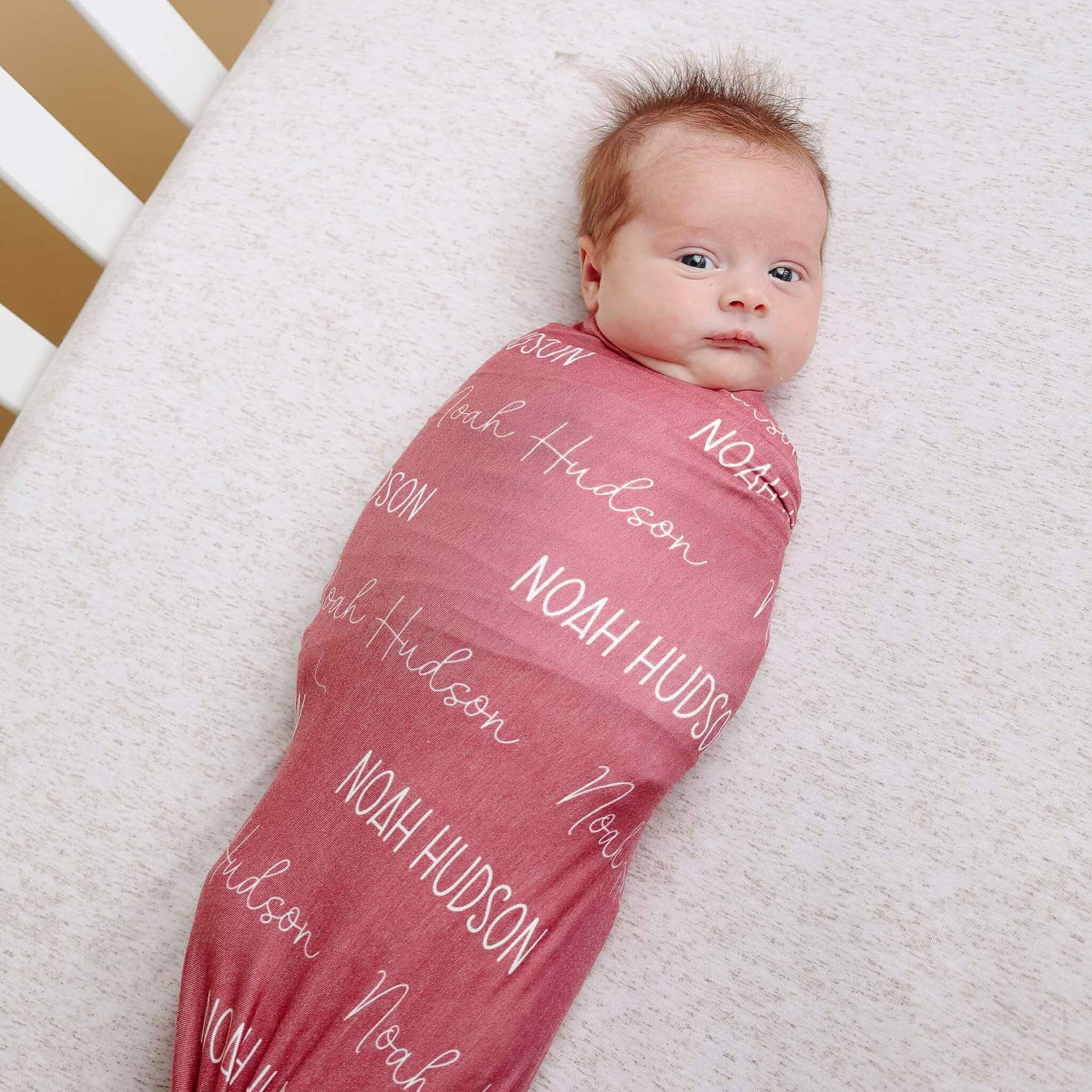 Personalized Baby Name Swaddle Blanket - Crimson