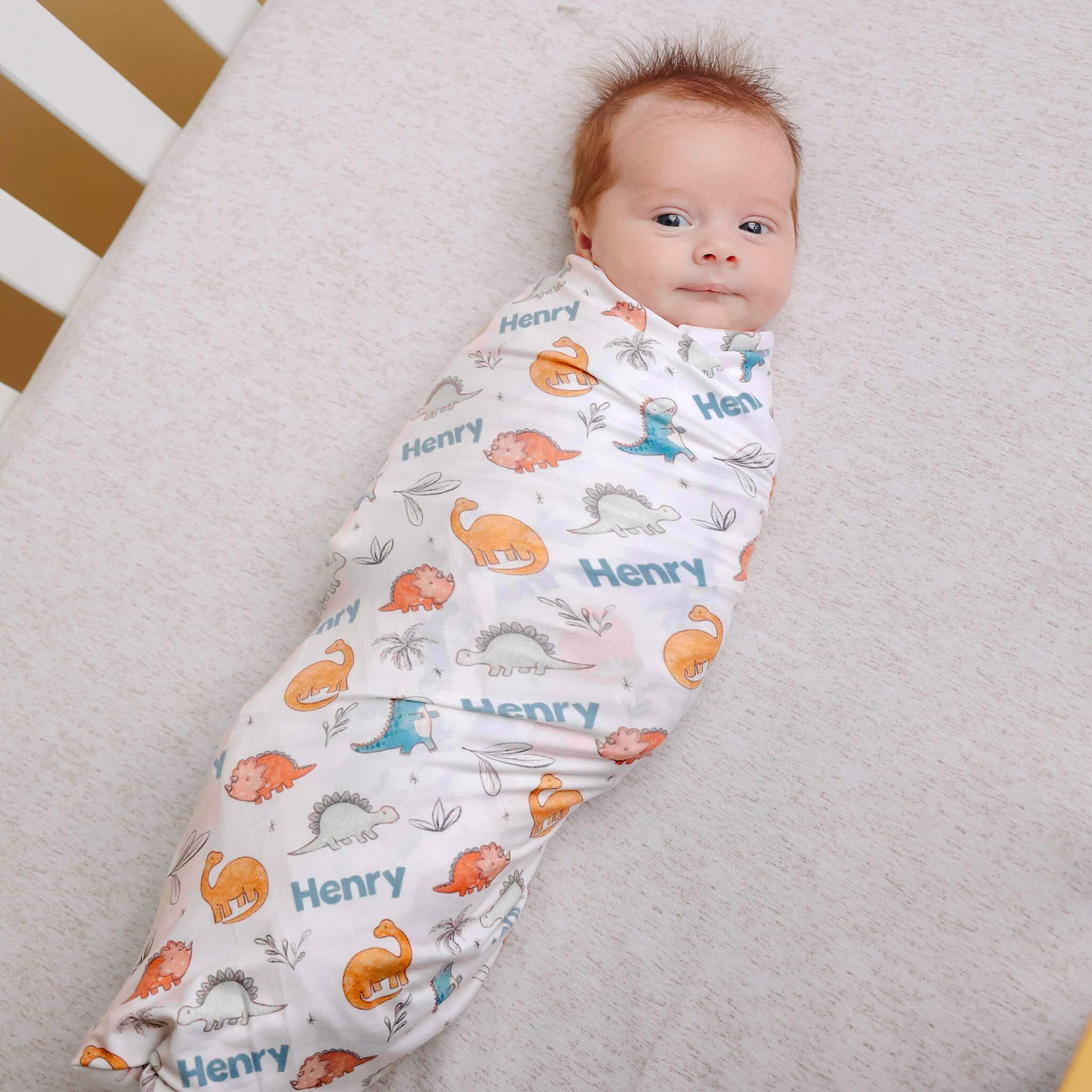 Personalized Baby Name Swaddle Blanket - Dino