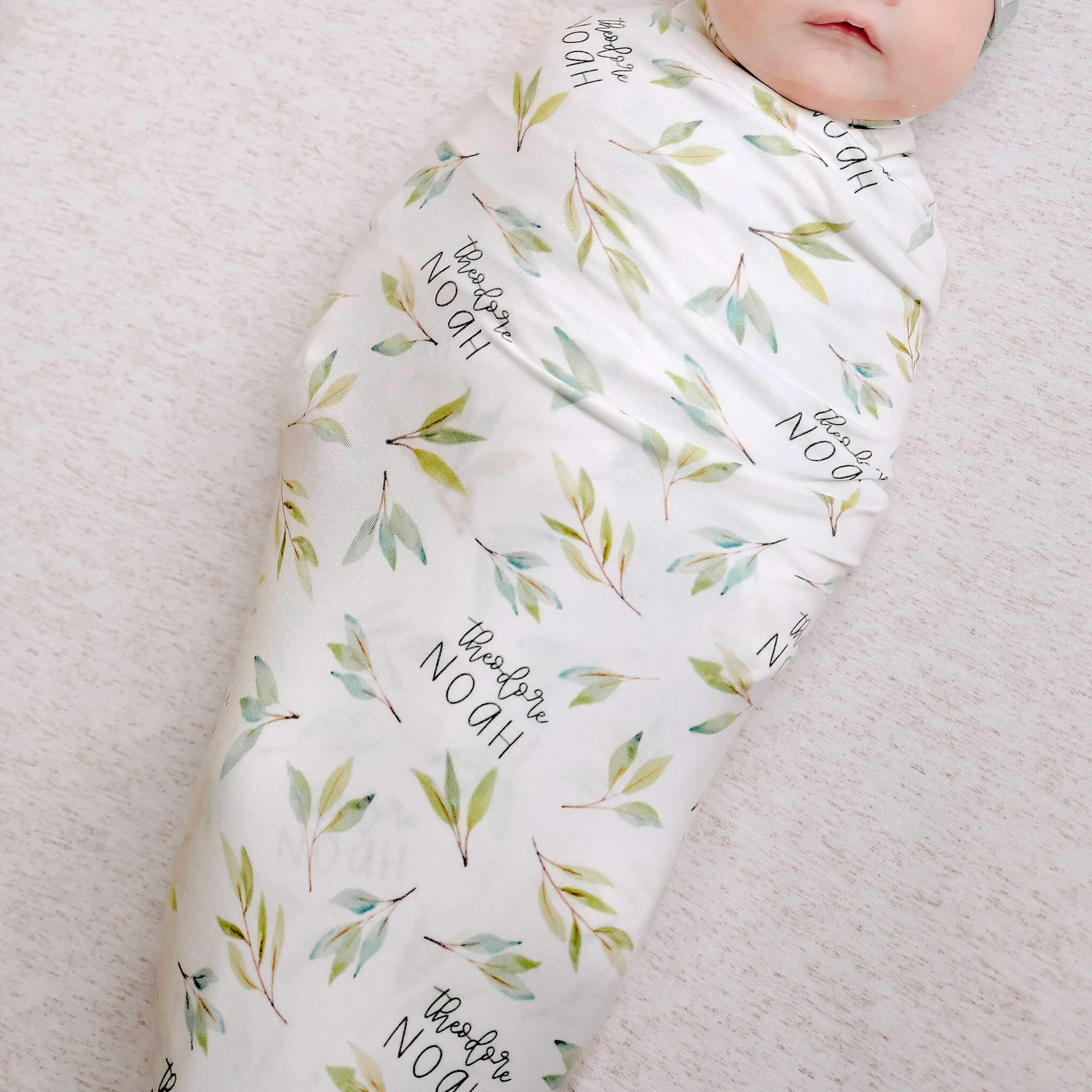 Personalized Baby Name Swaddle Blanket - Greenery