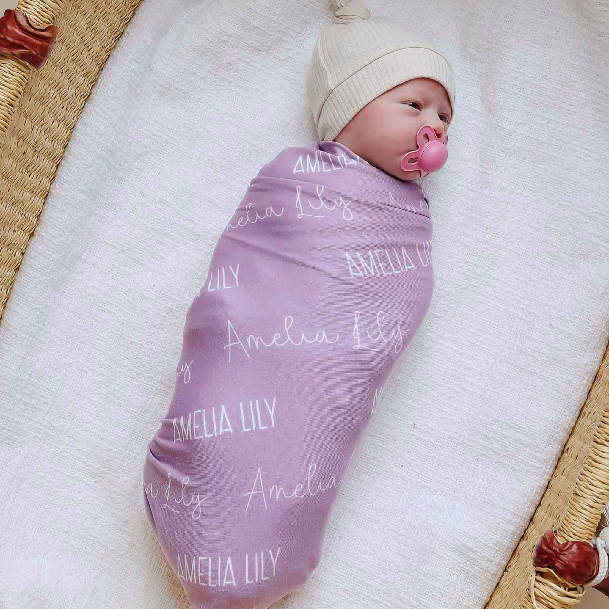 Personalized Baby Name Swaddle Blanket - Mulberry