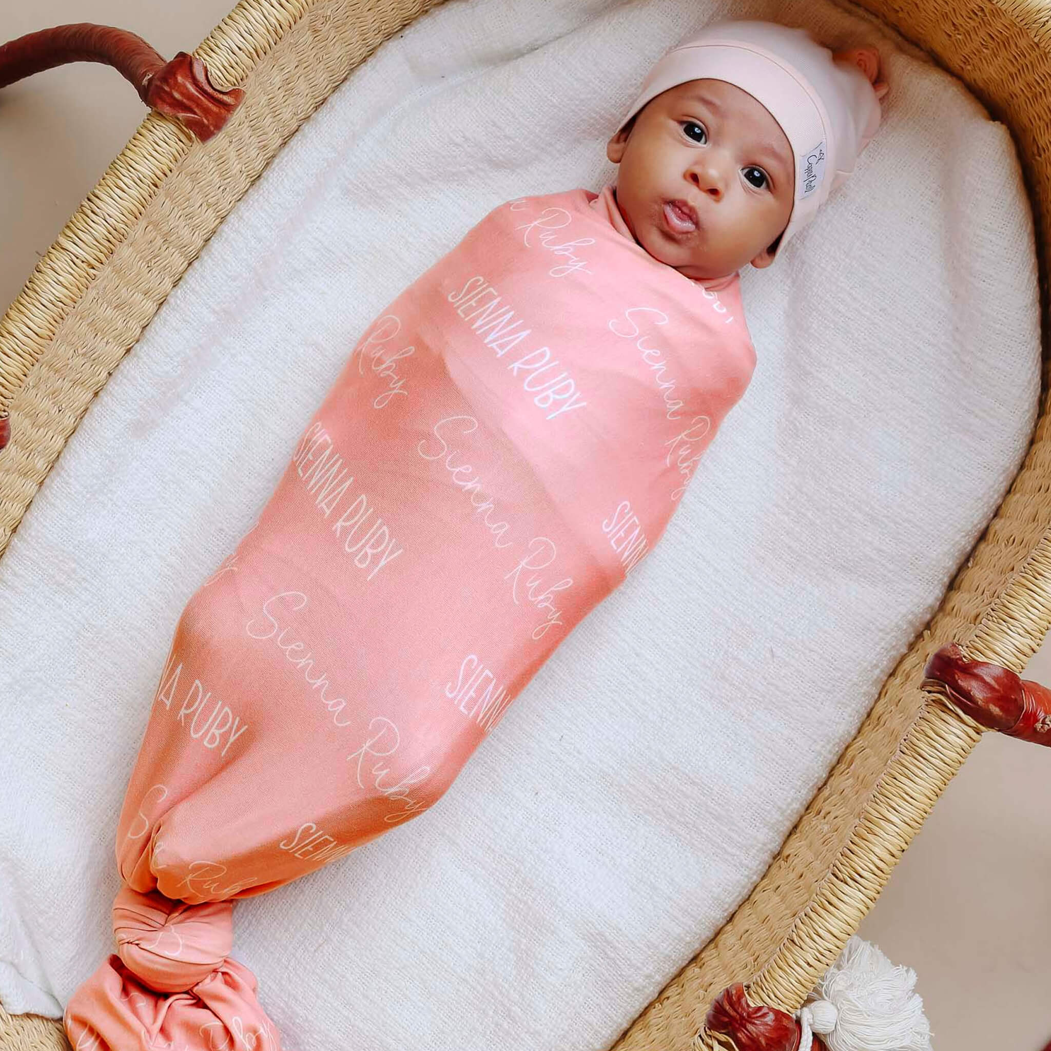 Personalized Baby Name Swaddle Blanket - Peach