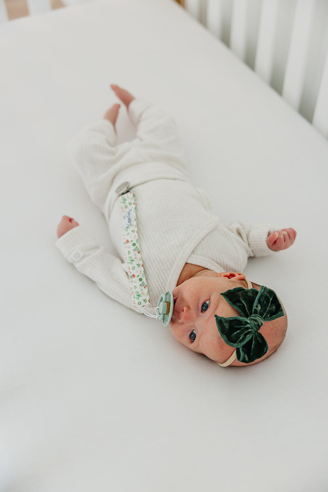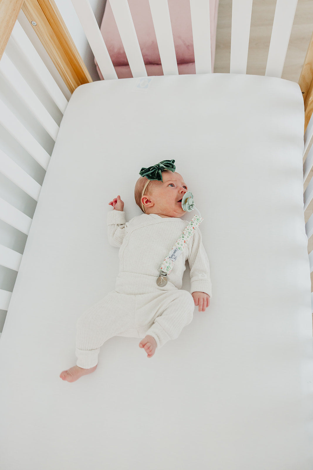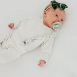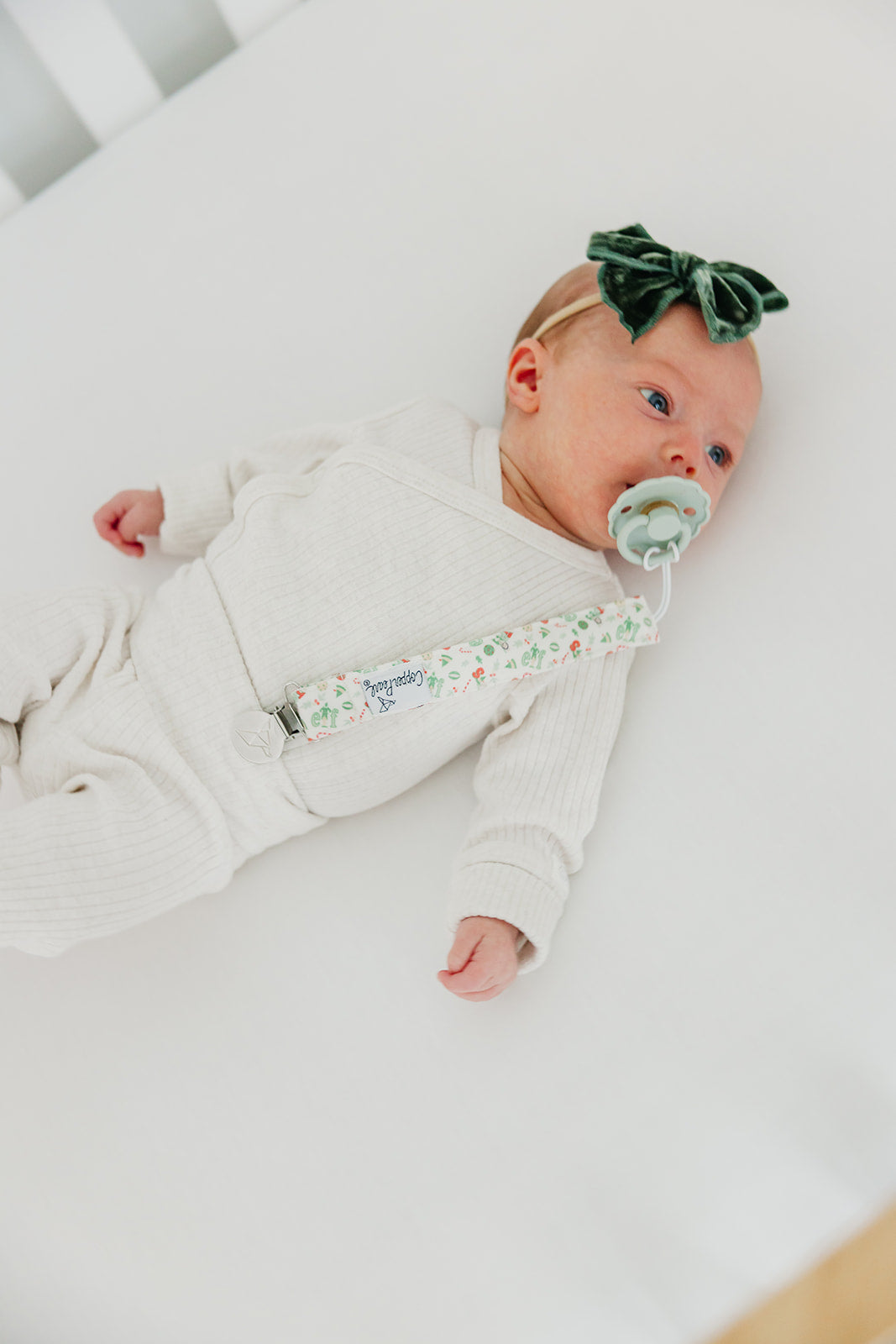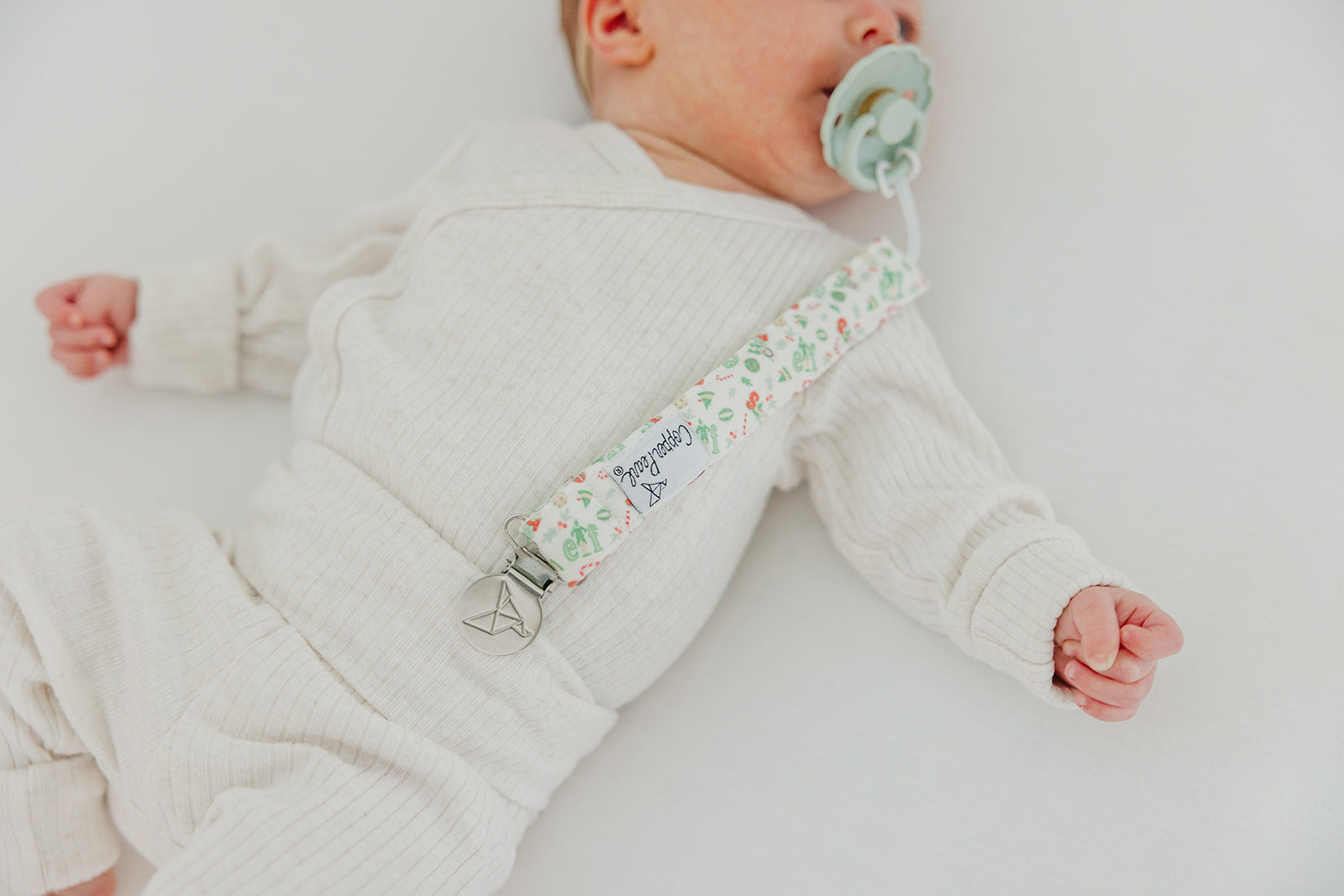 A chic way to keep baby's pacifier close at hand.