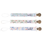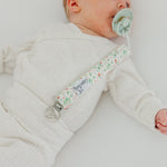 A chic way to keep baby's pacifier close at hand. Premium knit fabric strap. Stainless steel clip. Sold in Set of 3.