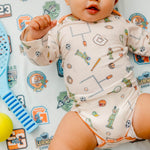 With buttery soft fabric that's gentle against baby's skin, these long sleeve bodysuits are the perfect everyday wardrobe piece. Available in trend-driven prints, they feature overlap shoulders for easy on and off. Our smaller sizes also include fold-over mittens to prevent scratching. Wear them for naptime, playtime, or anything in between!